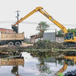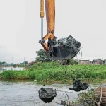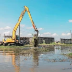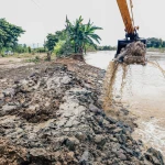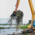 Ante ello, retroexcavadoras, tractores y volquetes de la Prefectura Ciudadana del Guayas y del Municipio de El Triunfo ejecutaron labores de reencauzamiento del río en un tramo de 1.000 metros.