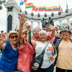 El paseo continuó por el Malecón Simón Bolívar. El Hemiciclo de la Rotonda atrajo la atención de los adultos mayores por su historia y por el momento único de llevarse un recuerdo fotográfico.