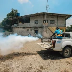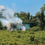 El humo empezaba a colarse en medio de las viviendas y sembríos asentados en el recinto La Unión, de la parroquia San Jacinto, en Colimes, mientras el sonido de las máquinas termonebulizadoras llamaba la atención de agricultores y moradores de esta zona. No se trataba de la tradicional quema de la panca de arroz sino de una brigada de fumigación de la Prefectura Ciudadana del Guayas que había llegado para beneficiar a sus pobladores.