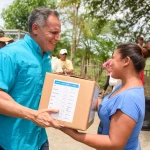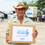 Los siguientes puntos donde llegó la Prefectura Ciudadana del Guayas con kits de asistencia humanitaria fueron los recintos La Rosaura y Miraflores, donde hubo 100 familias beneficiadas. Entre ellos, se encontraba Juan Franco, quien cargaba su kit de alimentos con una sonrisa de agradecimiento hacia Carlos Serrano: «Siempre se acuerda de nosotros, tanto cuando era concejal como ahora como viceprefecto».