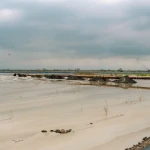 Los cuarteles de El Tejar, en Durán, es uno de los terrenos donde se deposita el sedimento removido de los alrededores del islote El Palmar, en el río Guayas. Ahora simula un extenso playón por donde se puede caminar en ciertos tramos, ya que ahora la cota está casi tres metros por arriba del límite inferior que tenía hace solo unos meses.