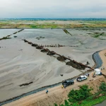 En total, el consorcio Dragando por Guayas ha vertido en El Tejar 195.000 m3 de sedimento extraído del río. “Casi una quinta parte ya está consolidado, y se ve una diferencia notable porque ya tiene una cota mucho más alta de alrededor de dos a tres metros”, explicó el director de Riego, Drenaje y Dragas de la Prefectura Ciudadana del Guayas, Juan Carlos Proaño.