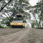 Personal técnico de la Dirección Provincial de Obras Públicas ejecuta con una motoniveladora y un rodillo la reconformación y compactación con asfalto recuperado en 300 metros del camino de segundo orden, para el posterior bacheo en 1,7 kilómetros restantes, utilizando el esparcidor de emulsión asfáltica y volquetes.