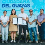 Además de la colocación de la primera piedra, también se firmó un convenio entre el Ministerio de Desarrollo Urbano y Vivienda, ConstruGuayas EP y la Prefectura Ciudadana del Guayas. El primer mandatario y la prefecta Aguiñaga suscribieron como testigos de honor.