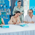 La prefecta Marcela Aguiñaga firmó el convenio con la vicealcaldesa de Guayaquil, Blanca López, y el gerente de la Empresa Pública Municipal de Desarrollo, Acción Social y Educación, Camilo Samán, en el marco del cuarto encuentro Compartir Ciudadano, que se desarrolló en el CAMI de Pascuales.