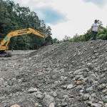 En el río Blanco, cantón El Triunfo, se realiza la limpieza del cauce y se reconforma el muro de contención.