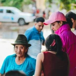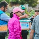 La prefecta Marcela Aguiñaga llegó, la tarde de este lunes 19 de febrero, hasta los barrios Ernesto Torbay y Altamira, en General Villamil Playas, para entregar 200 kits de ayuda humanitaria y 200 toldos para los pobladores afectados por las inundaciones.