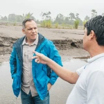 En compañía del alcalde Pedro Orellana, este 6 de junio el viceprefecto Serrano visitó el recinto La Delicia. Allí observaron la gran cantidad de sedimento que baja desde la cordillera por las lluvias. Esto ha generado que el río desvíe su curso, afectando sembríos y causando daños a las viviendas ubicadas en las riberas.